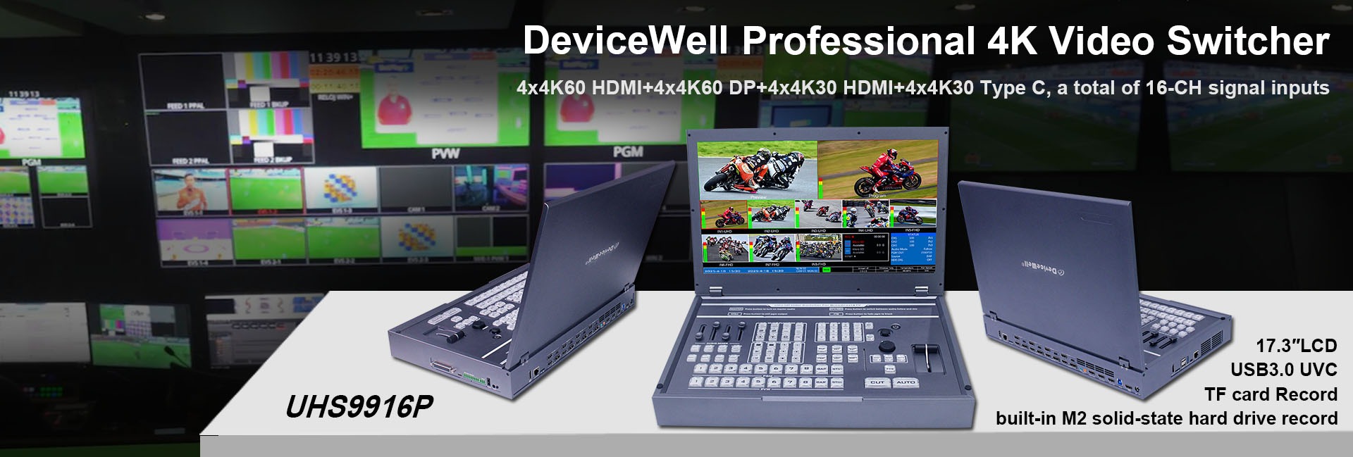 DeviceWell UHS9916P Mezclador DE VIDEO 4K de 8 canales para transmisión en vivo de TikTok YouTube con equipo de transmisión de radio y TV de grabación