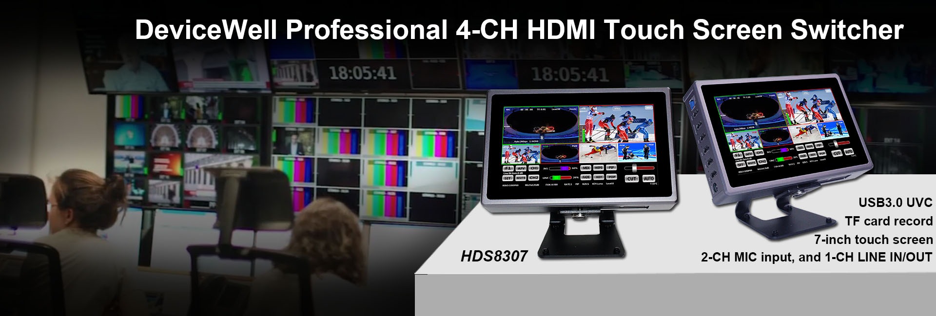 DeviceWell-equipo de Audio Visual HD HDS7105P, 5 CANALES, transmisión en vivo, PIP, t-bar, para Iglesia